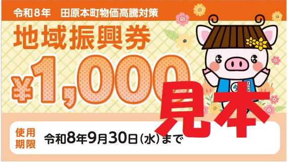 田原本町が発行している「令和8年田原本町物価高騰対策地域振興券」をご利用いただけます。